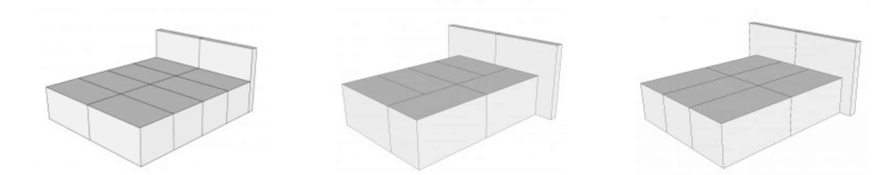 Da ein Schlafzimmer größer ist als das andere, können Sie unsere Bettgrößen leicht anpassen. Eine naheliegende Lösung besteht darin, die separaten Kopfteile wegzulassen, wodurch 10 cm Länge eingespart werden. Aber es gibt noch eine andere praktische Lösung ! Wenn Sie die Kartons des Bettes um eine viertel Umdrehung kippen, wird das Bett etwas höher, aber auch etwas kürzer. So können Sie bis zu 20 cm in der Länge variieren!